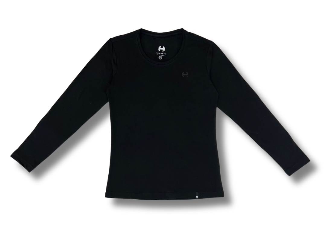 Camiseta negra Hundred Wear de hombre en algodón en manga larga, logotipo Hundred y alta calidad. Composición 95% algodón y 5% elastano. Diseño y fabricación exclusiva.