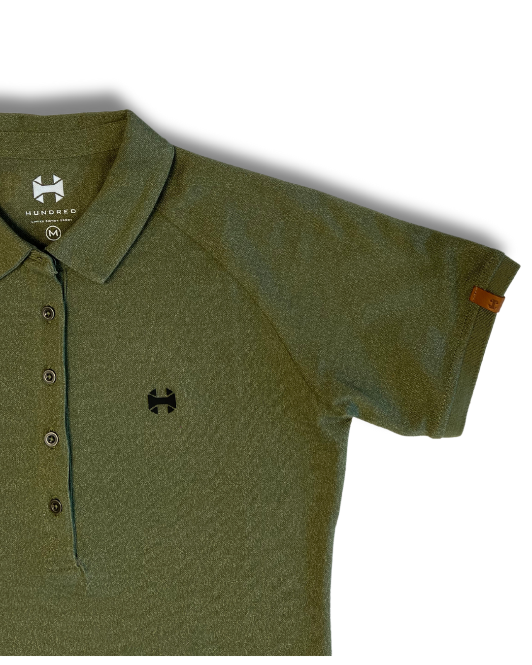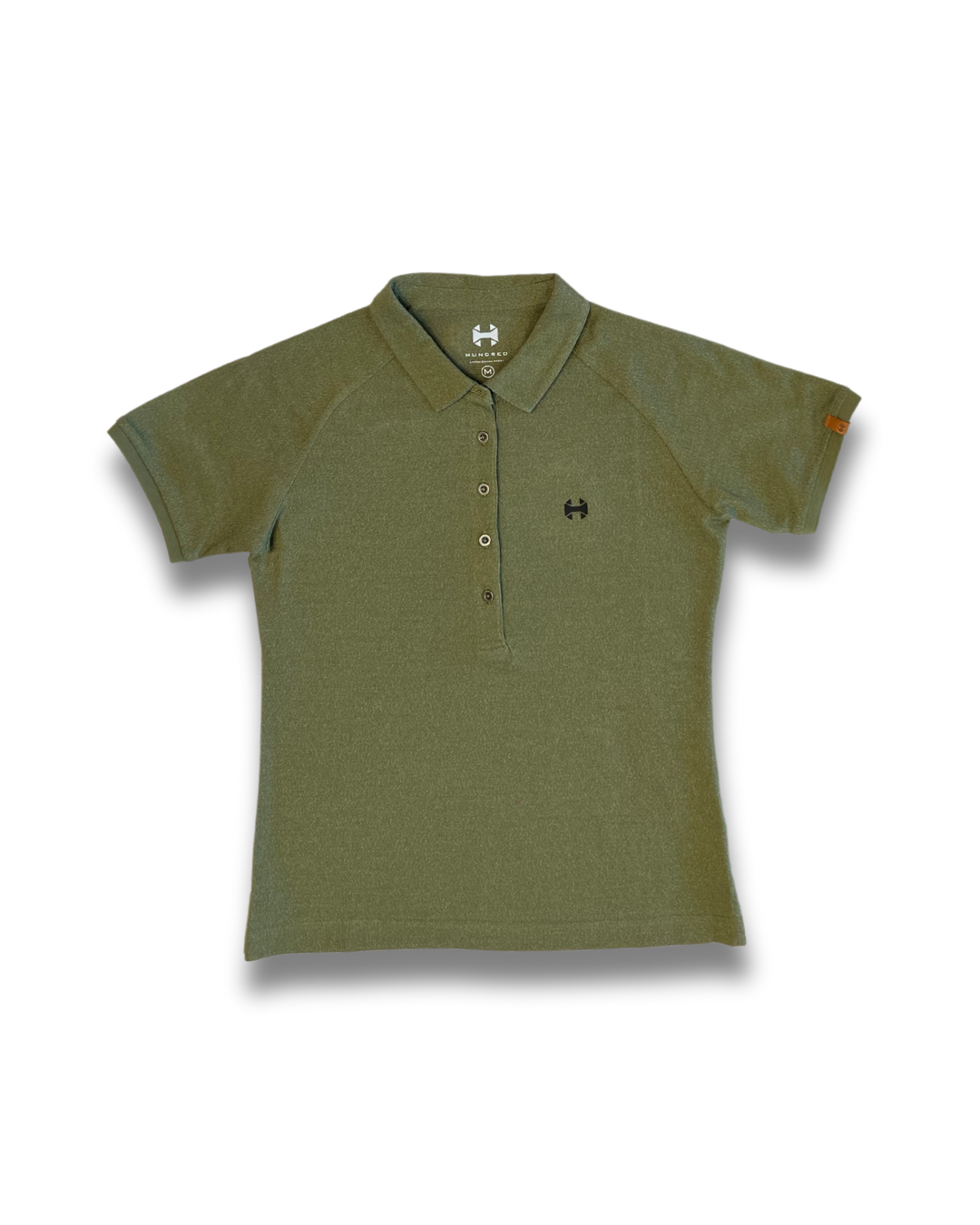 Polo verde Hundred Wear para mujer de algodón en manga corta, con cuello, remates en mangas y bajos, logotipo Hundred y alta calidad. Composición 52% algodón, 45% poliéster reciclado y 3% elastano. Diseño y fabricación exclusiva.